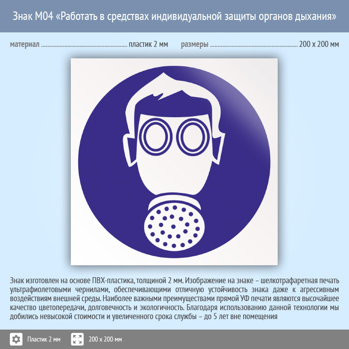 Знак M04 «Работать в средствах индивидуальной защиты органов дыхания» (пластик, 200х200 мм) в Ноябрьске купить