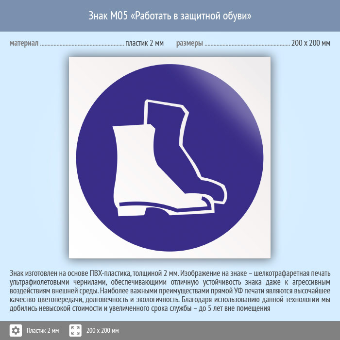 Знак M05 «Работать в защитной обуви» (пластик, 200х200 мм) в Ноябрьске купить