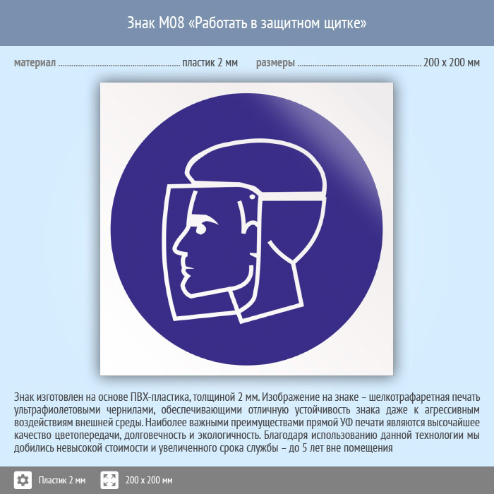 Знак M08 «Работать в защитном щитке» (пластик, 200х200 мм) в Ноябрьске купить
