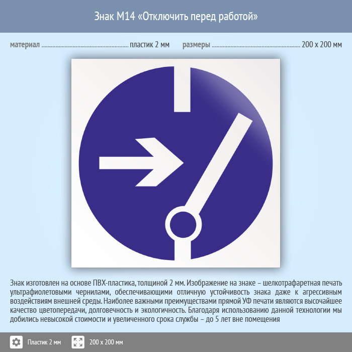 Знак M14 «Отключить перед работой» (пластик, 200х200 мм) в Ноябрьске купить