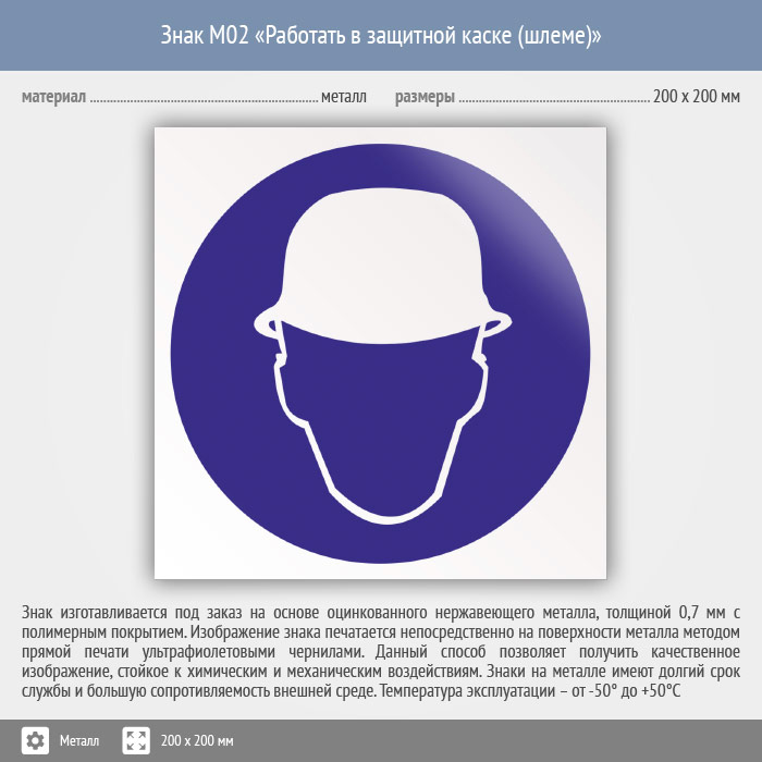 Знак M02 «Работать в защитной каске (шлеме)» (металл, 200х200 мм) в Ноябрьске купить