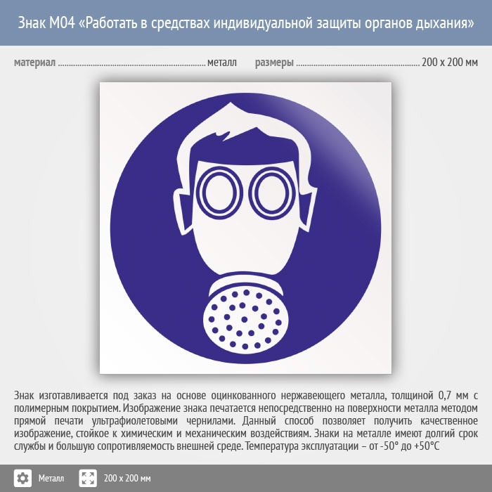 Знак M04 «Работать в средствах индивидуальной защиты органов дыхания» (металл, 200х200 мм) в Ноябрьске купить