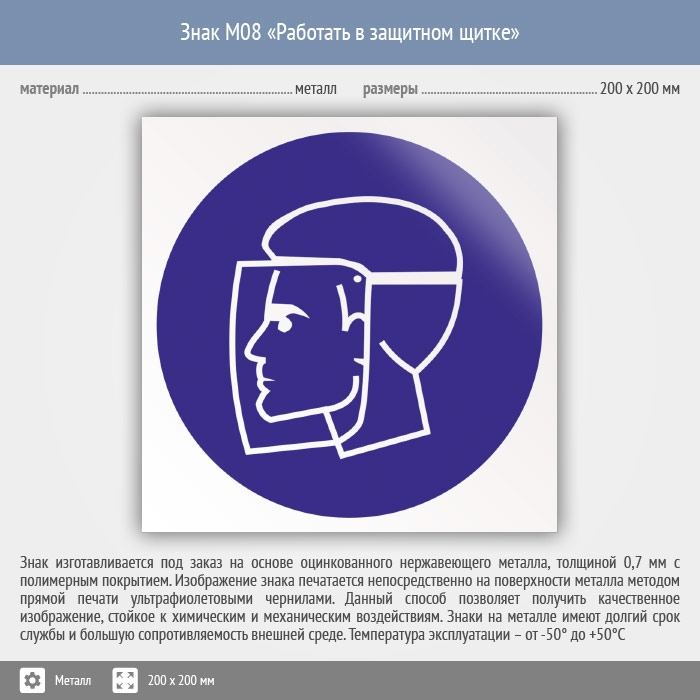 Знак M08 «Работать в защитном щитке» (металл, 200х200 мм) в Ноябрьске купить