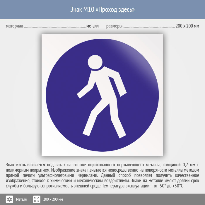 Знак M10 «Проход здесь» (металл, 200х200 мм) в Ноябрьске купить