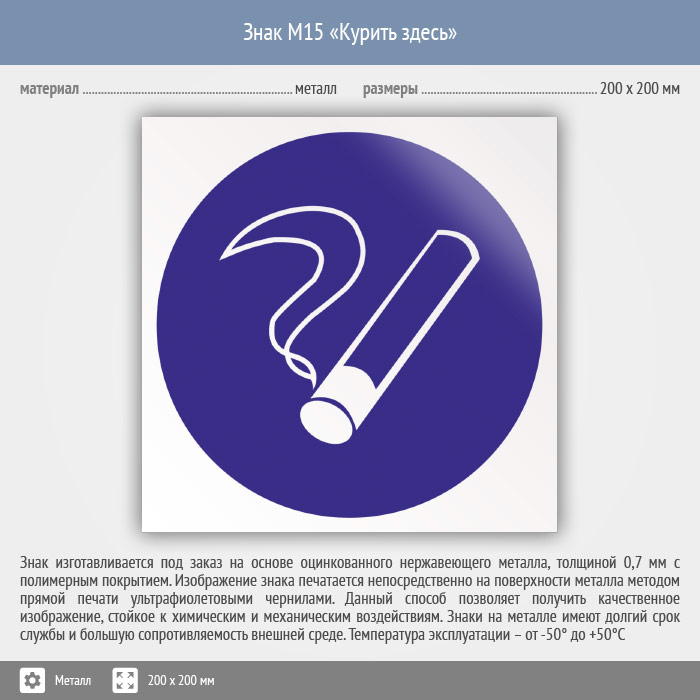 Знак M15 «Курить здесь» (исключен) (металл, 200х200 мм) в Ноябрьске купить